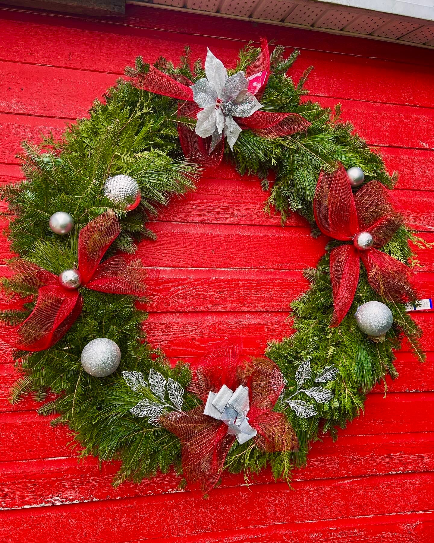 Belles couronnes naturelles faites de sapin, pin, cèdre et de buis. Elles auront des thèmes de couleurs différentes et les photos seront ajustées lorsque nous les recevrons. Plusieurs tailles seront aussi disponibles entre 12 et 36 pouces de diamètre.