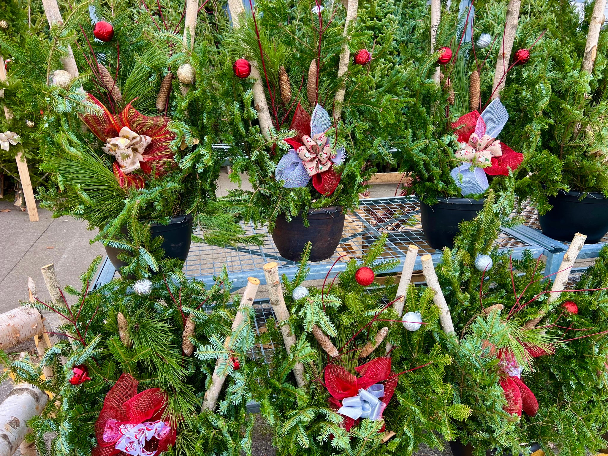 Superbes pots ornementaux naturels fait de sapins, pins, boulots, et de branches de cournoyer. Avec boucles et décorations, il feront une superbe décoration extérieure. Les images sont à titre représentatif et seront ajuster lorsque les nouveaux pots seront disponibles.